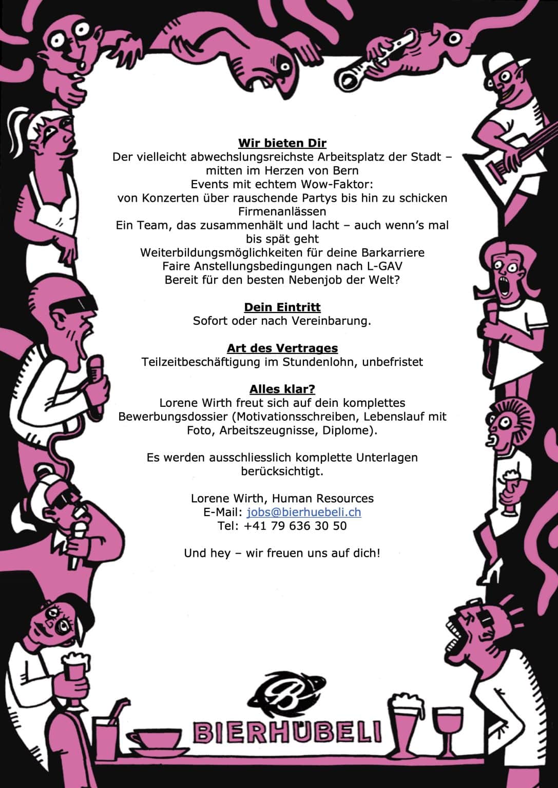 Du mixt, shakest und zauberst unseren Gästen genau den Drink, den sie brauchen – ob sie im schrillen Superman Outfit an die Bad Taste Party, auf Glitzer-Mission bei Just Taylor oder mit viel Liebe zur Freiheit an die Queerhübeli Party kommen. Du empfiehlst neue Drinks, verbreitest gute Laune und sorgst für Stimmung – nicht nur vor, sondern auch hinter der Bar. Auch wenn du gerade Gläser polierst oder den Boden glänzen lässt: Dein Charme bleibt unerschütterlich.